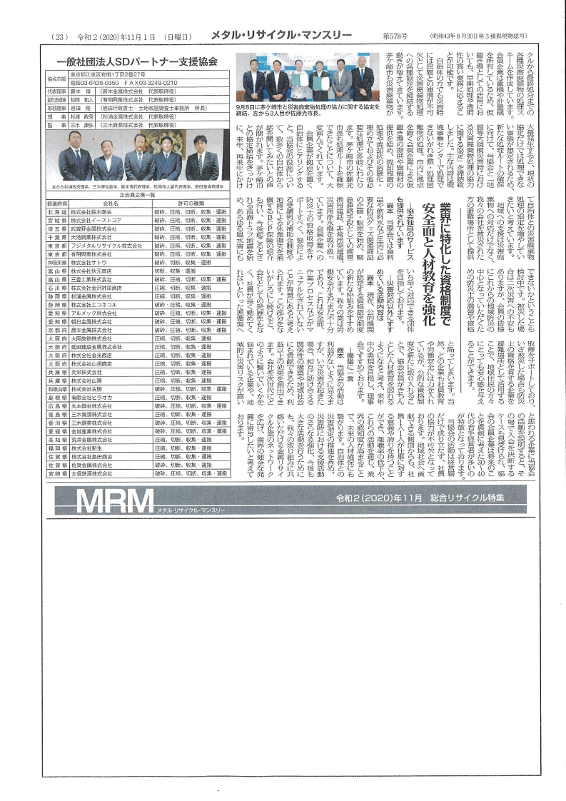 メタル・リサイクル・マンスリー11月号に掲載された巖本 博代表理事のインタビュー記事の(その2)です。掲載記事のボリュームの関係上、少し画像が粗いですがその内容をすべて公開致します。当協会へのご質問や、協会に加入をご希望の企業ご担当者様はこのHP下の「お問い合わせフォーム」からご連絡をいただければ幸いです。ご希望の方には、協会リーフレット(カラー/全8ページ)もお送り致します。皆様のご参加をお待ちしております。