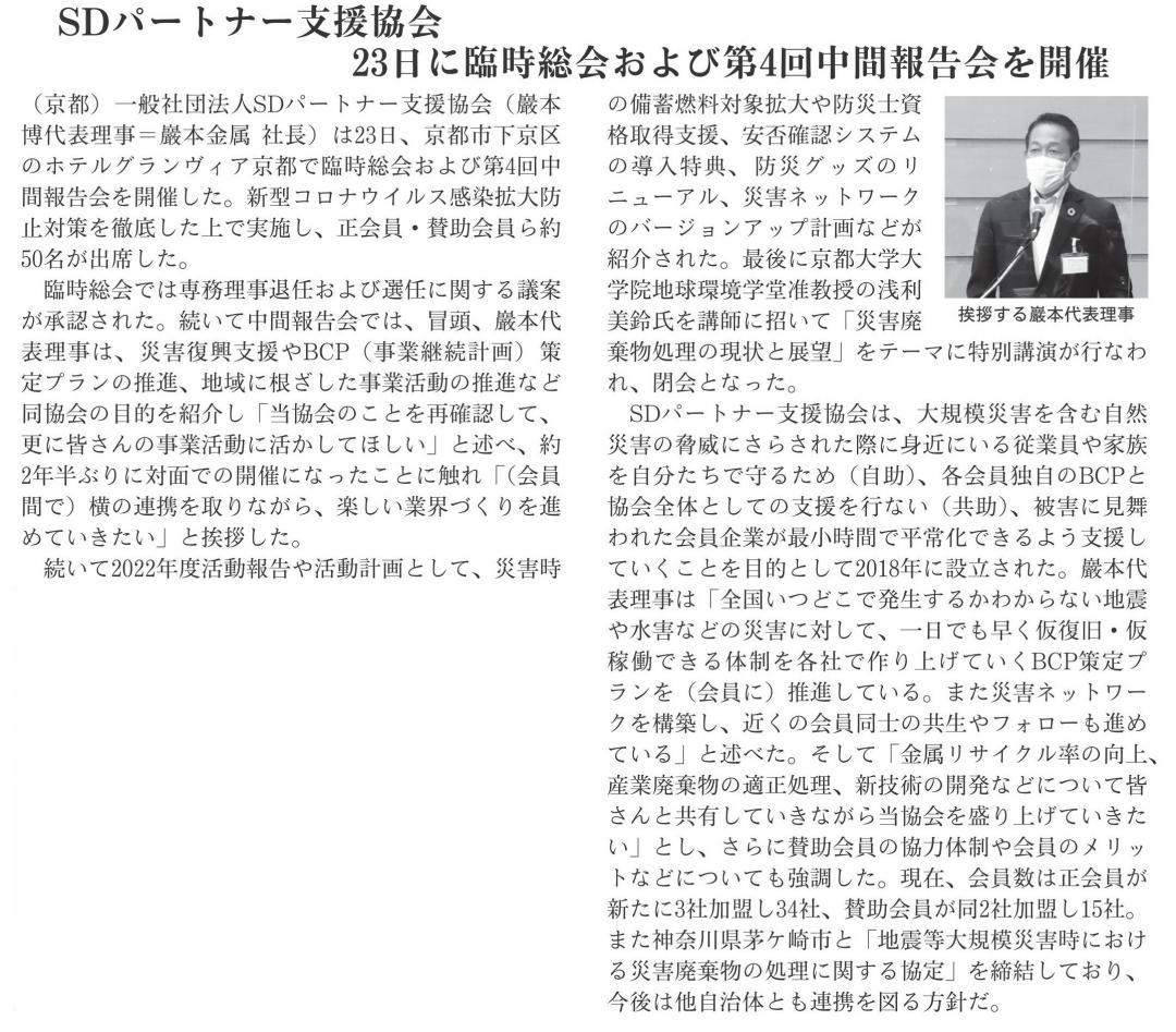 > 日刊市況通信8月26日(金曜日)第16752号に掲載されました。