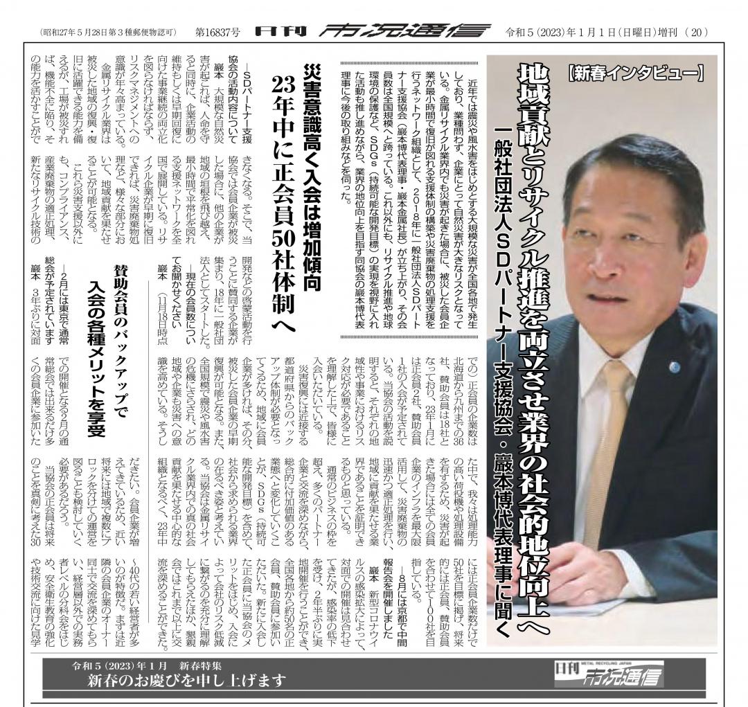 日刊市況通信1月1日(日曜日)第16837号新春特集に掲載されました。