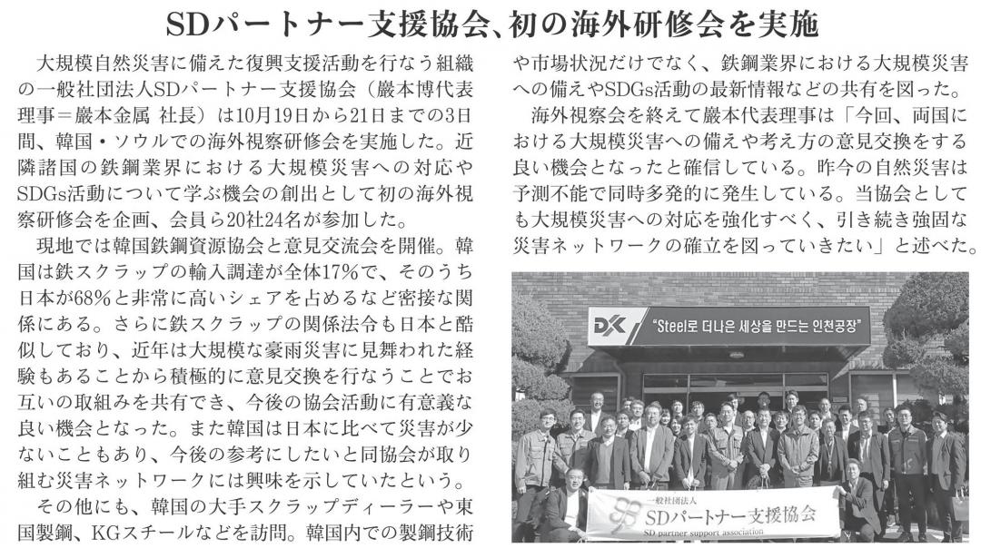 2023年10月19日~21日に開催いたしました海外視察研修会の概要が日刊市況通信に掲載されました。
