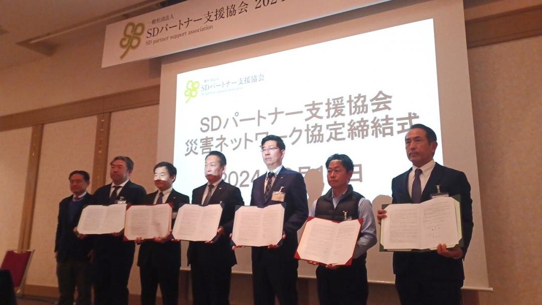 2024年2月15日にSDパートナー支援協会定期総会並びに災害ネットワークに関する災害協定締結式が品川プリンスホテルにて開催されました。当日は全国各地から多くの会員様に参加いただき、ありがとう御座います。また、本年度は多くのビジターにも参加いただき、今後の協会活動へ賛同いただける機会とすることができました。引き続き当協会の活動へのご理解とご協力を賜りますようお願い申し上げます。